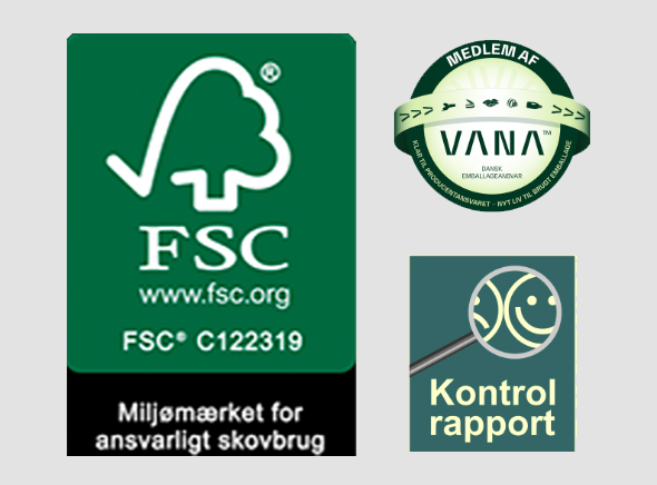 Hos os har I garanti for, vi tager ansvar. Vi er medlem af VANA, FSC-certificeret og godkendt producent af emballage til fødevarer.